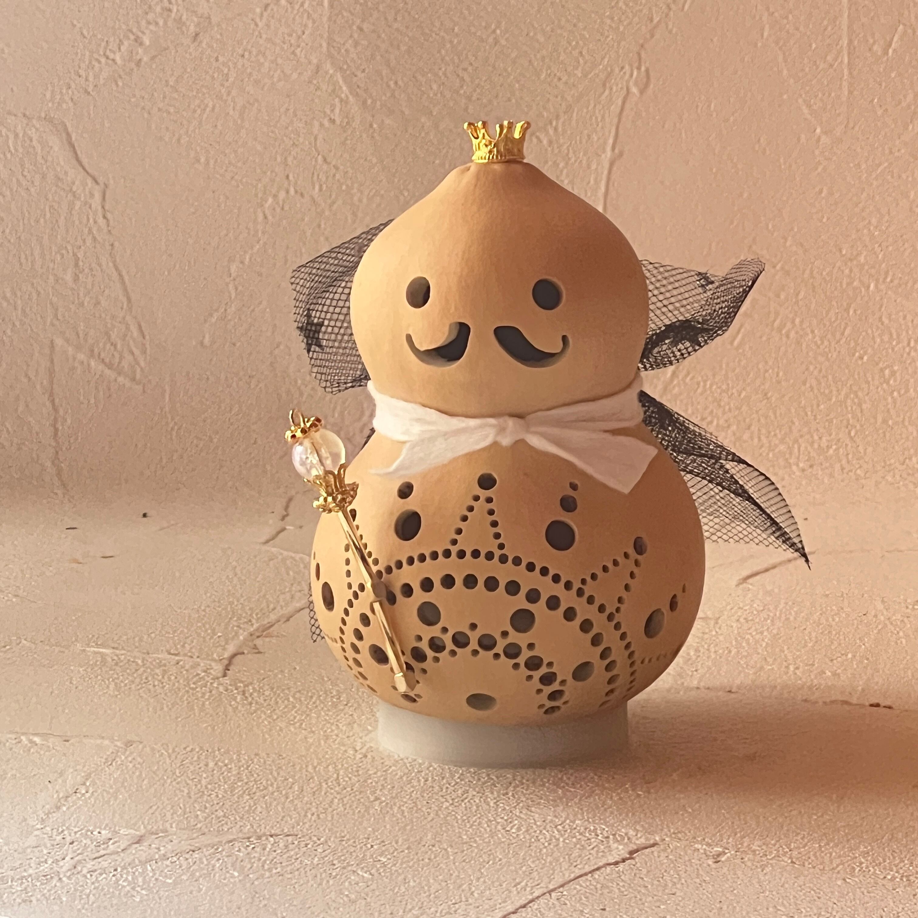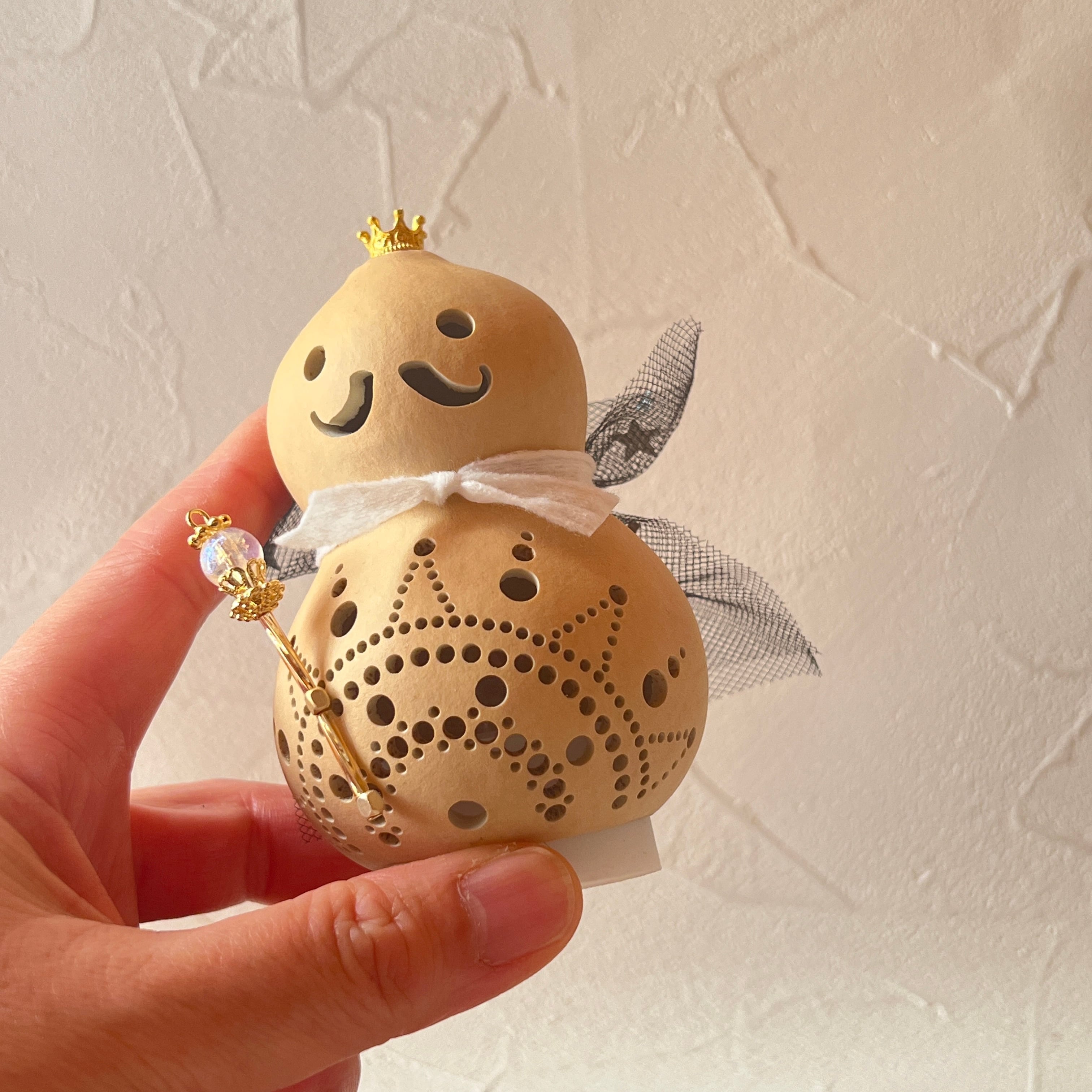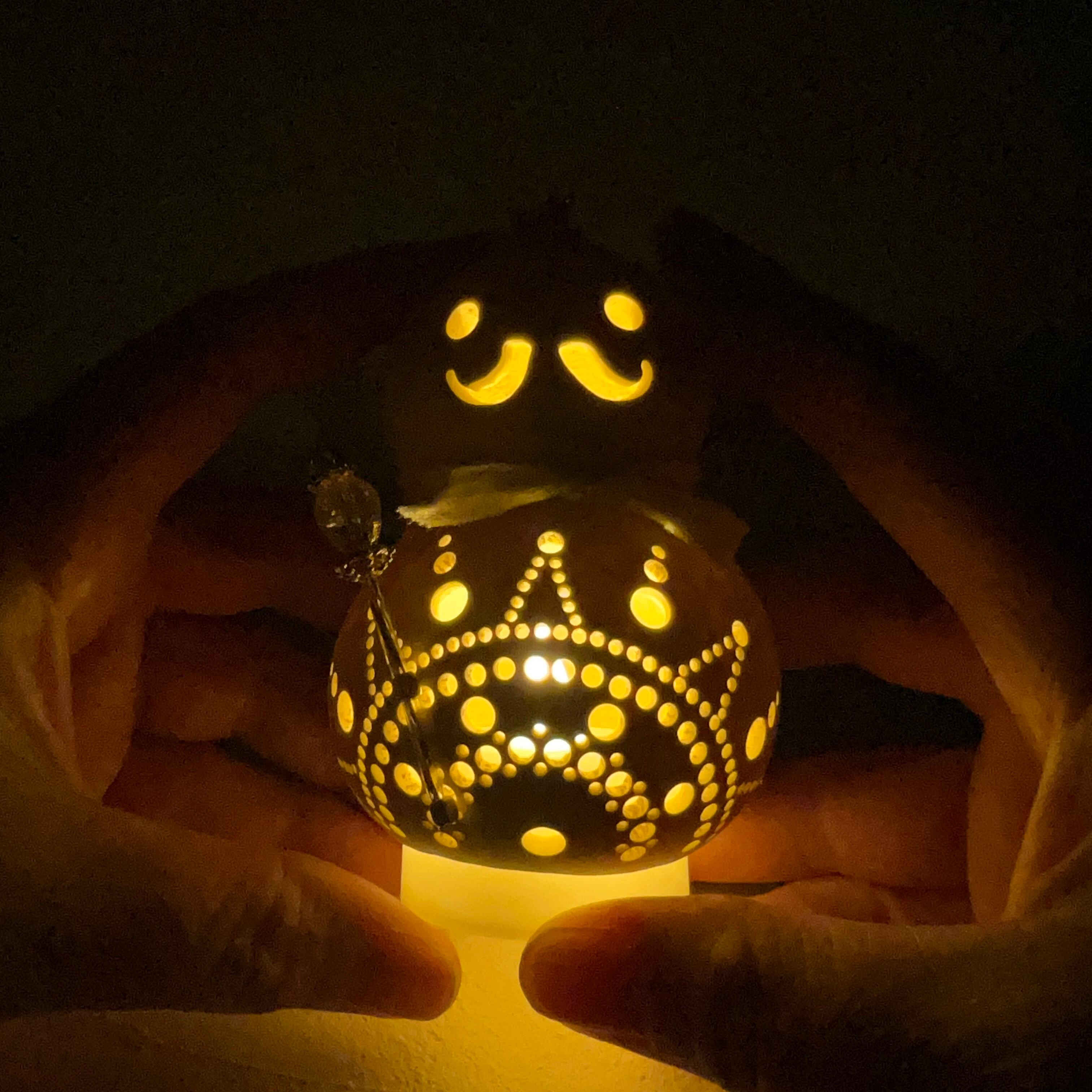 ひょうたんは丹精込めて栽培しておりますがその過程で葉っぱや隣のひょうたんと触れ合ったり虫たちと共存しながら育つ為、凹凸や変色、傷などがございます。
