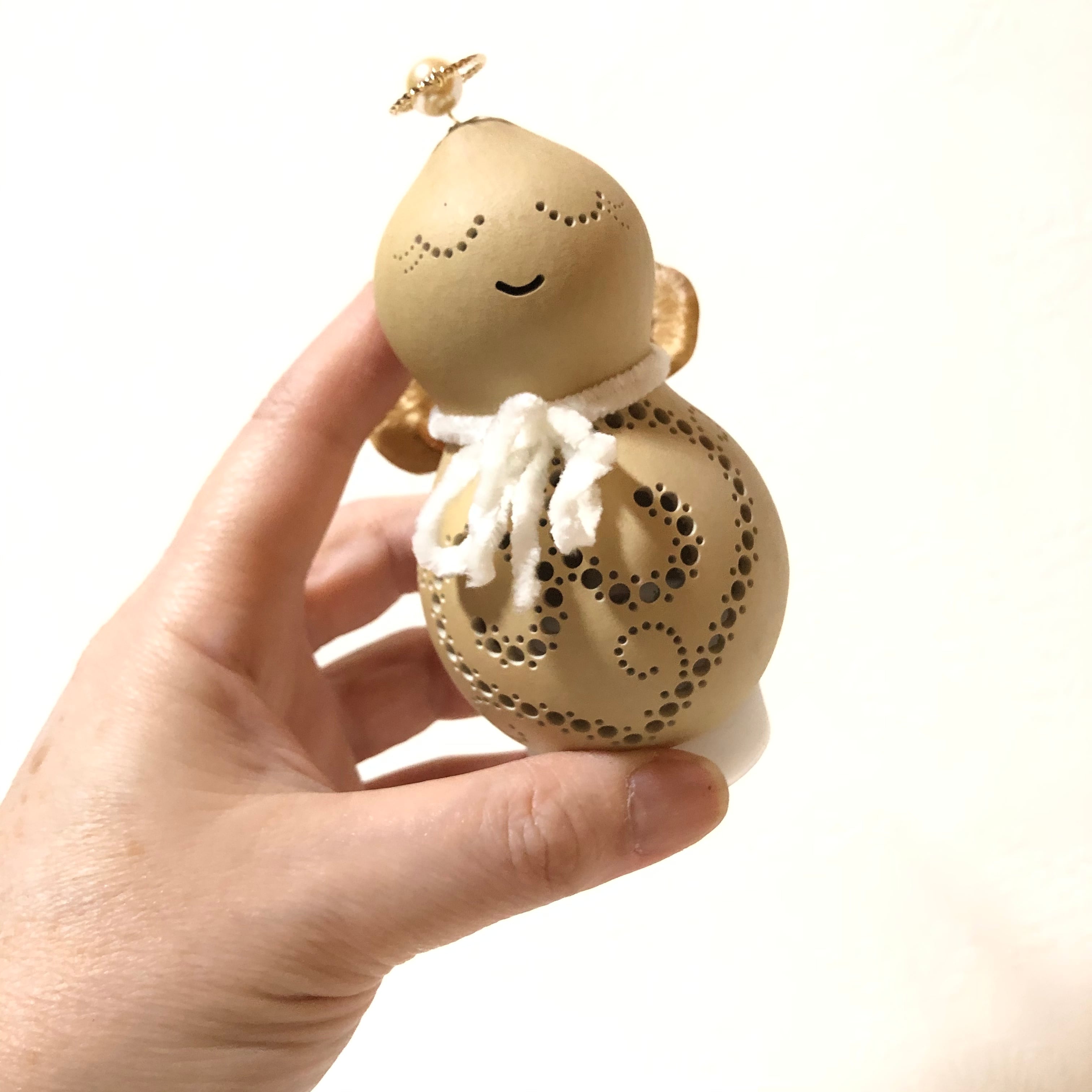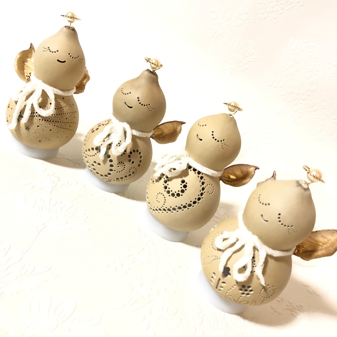 ひょうたんは丹精込めて栽培しておりますがその過程で葉っぱや隣のひょうたんと触れ合ったり虫たちと共存しながら育つ為、凹凸や変色、傷などがございます。